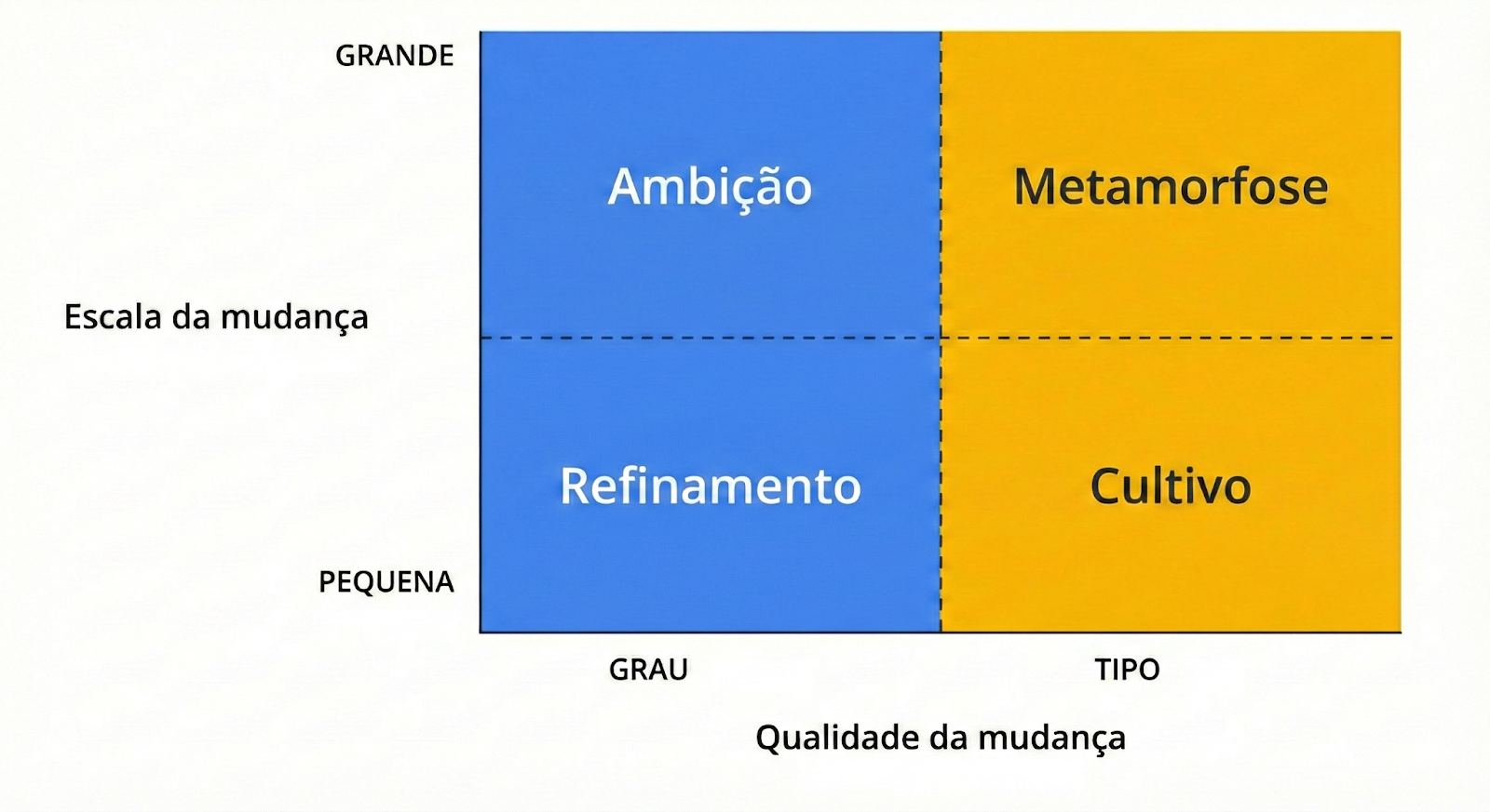 A pesquisa da HBR, publicada em 2026, identificou que as aspirações podem ser categorizadas em quatro tipos principais, baseados na escala e na qualidade da mudança desejada. Empresas que entendem isso não vendem produtos, elas guiam transformações. E esse conceito se aplica perfeitamente ao ambiente corporativo. Suas equipes, seus gestores e seus colegas também têm aspirações em cada demanda que fazem.
