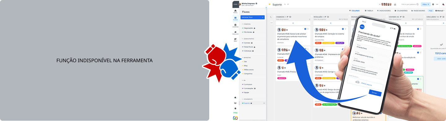 Na Ummense, os cards podem estar em múltiplos quadros simultaneamente, permitindo que a mesma informação seja acompanhada por diferentes equipes ou departamentos sem retrabalho e perda de informação. Essa flexibilidade assegura uma visão unificada dos processos com confidencialidade, fortalece a colaboração entre áreas e traz mais agilidade para a gestão do trabalho.